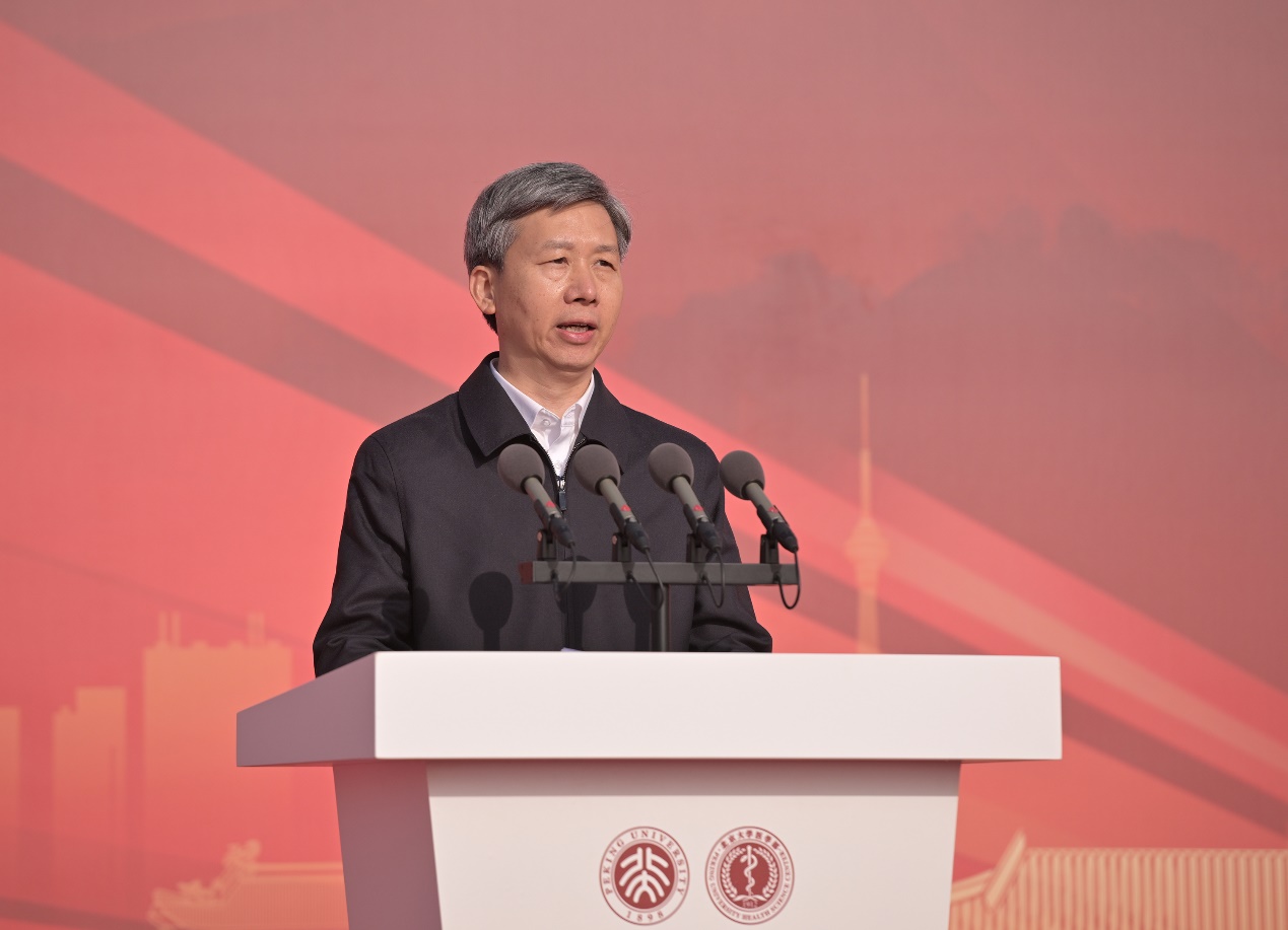 在2018年北京大学120周年校庆之际,北京大学与密云区共同谋划建设北京大学怀密医学中心。历经五年多的努力,美好蓝图终成生动现实。乔杰代表北京大学对支持和参与怀密医学中心建设的各级领导、各界朋友、各位同仁致以最衷心的感谢,表示必将始终坚持首善标准、面向国家战略需求、锚定世界一流,高质量完成建设任务,不辜负党和国家寄予的厚望。“怀密医学中心建设的正式启动,不仅为北大发展提供了空间扩展的宝贵机遇,更将大大提升北大医学服务北京科技创新中心和助力国家卫生健康事业发展的能力。”北大医学将以此为契机,发挥医学学科的深厚底蕴和学校的综合优势,力争在新药研发、医疗装备、关键技术等领域取得重大突破,打造一个集医学教育、临床医疗、科学研究、社会服务于一体的现代化医学中心,更深层次融入首都建设的战略全局,辐射带动密云区和怀柔科学城教育、科技、卫生事业发展。“怀密医学中心的拔地而起,必将成为校城融合的典范,更将成为中国医学教育发展及健康中国建设征程上的重要里程碑。”