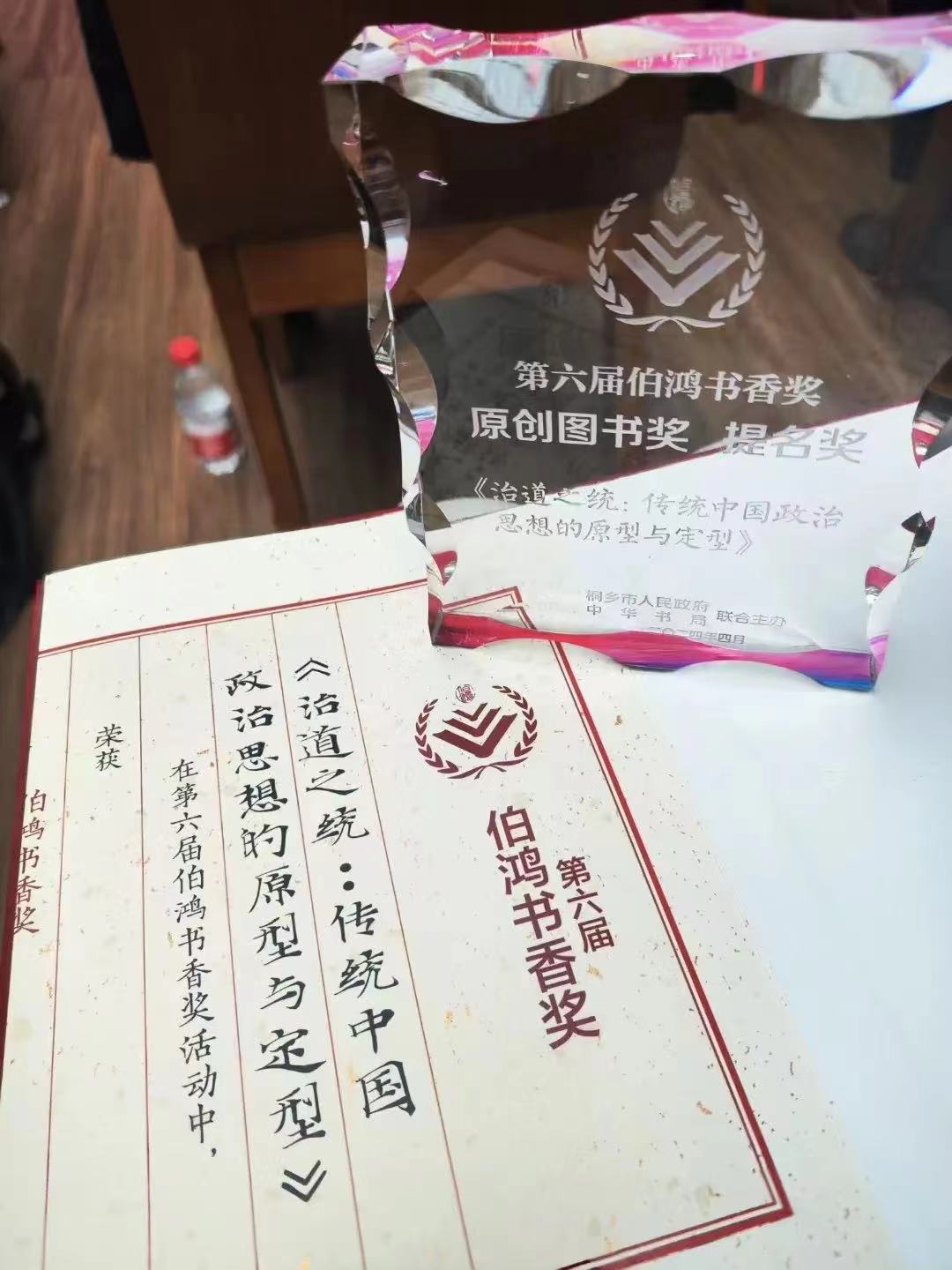 4月26日上午,第六届“伯鸿书香奖”颁奖典礼在浙江桐乡市陆费逵图书馆举行。北京大学荣新江教授的《从张骞到马可·波罗:丝绸之路十八讲》、朱良志教授的《四时之外》、孙明教授的《治道之统:传统中国政治思想的原型与定型》获原创图书奖。