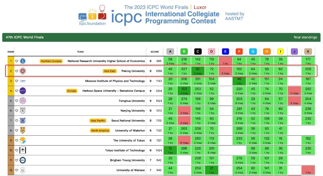 作为全球最具影响力的程序设计顶级赛事,ICPC备受瞩目。受疫情影响,第46届和47届ICPC WF延期到2024年4月14-19日,同时在埃及卢克索举行。本次总决赛共有50多个国家,170多所学校,840多位选手参加,汇集了来自全世界的程序设计高手,北大在此之前获得过亚军和季军。
