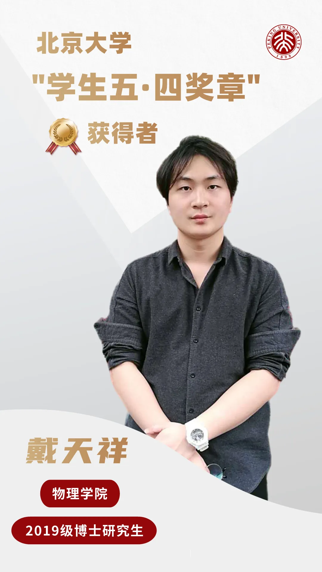 戴天祥曾获第十九届王大珩光学奖学生奖、CLEO-PR 2022 Best Paper Award、国家奖学金、北京大学校长奖学金、北京大学三好学生标兵等。