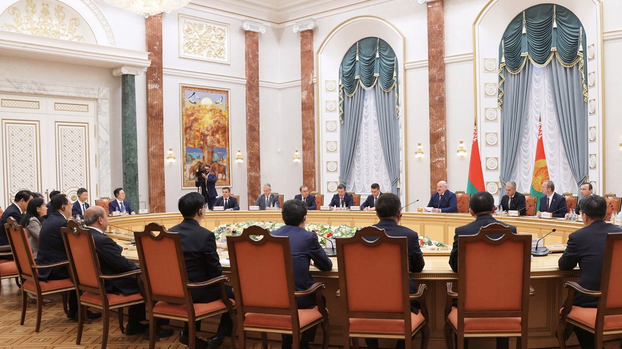 值此北京大学与白俄罗斯国立大学联合举办“中白高水平大学校长论坛”之际,6月25日上午,白俄罗斯总统亚历山大·卢卡申科在总统府会见北京大学党委书记、校务委员会主任郝平和中国高校代表团。中华人民共和国驻白俄罗斯共和国特命全权大使谢小用,中国人民大学、南开大学、吉林大学、东南大学、武汉大学、中山大学、西安交通大学、大连理工大学、北京外国语大学、西北大学、辽宁大学、石河子大学、重庆理工大学、浙江外国语学院等中方高校代表,白俄罗斯共和国教育部部长安德烈·伊万涅茨以及白俄罗斯国立大学校长安德烈·卡罗尔等9所白俄罗斯高校代表参加会见。