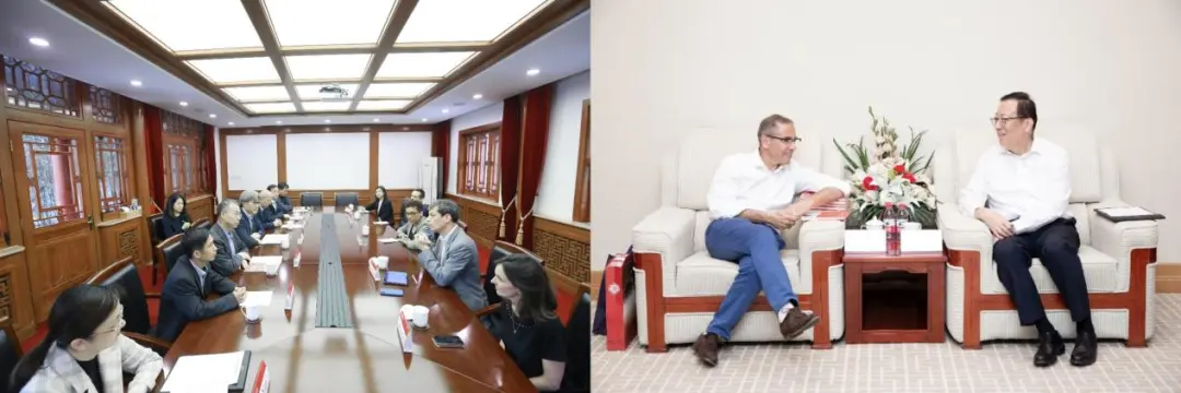 法国巴黎综合理工大学副校长访问北京大学(左),北京大学党委书记郝平会见法国阿尔多瓦大学校长帕斯夸莱·马默(右)