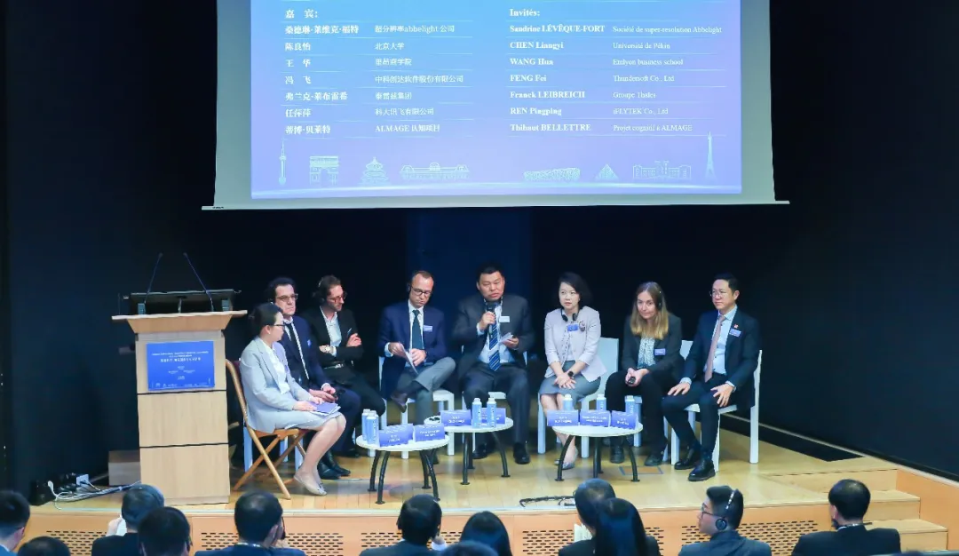 圆桌对话环节由欧洲商学院执行副校长弗朗西斯科·拉塔利诺主持,北京大学未来技术学院分子医学研究所博雅特聘教授、国家生物医学成像科学中心副主任陈良怡,中科创达软件股份有限公司法国地区代表冯飞,科大讯飞有限公司党委副书记、副总裁任萍萍,法国国家科学研究中心所长、奥赛分子科学研究所所长、巴黎萨克雷大学教授桑德琳·莱维克·福特,里昂商学院副校长王华,泰雷兹集团激光事业部主任弗兰克·莱布雷希,ALMAGE认知项目负责人、神经心理学家蒂博·贝莱特围绕“中法教育与产业融合:共建全球创新生态与未来人才蓝图”开展讨论。