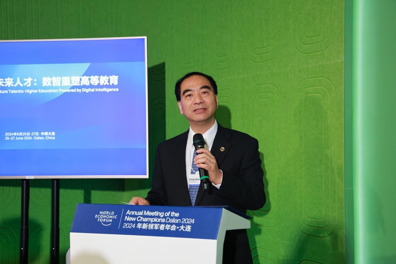 年会上,由北京大学、数智教育发展国际大学联盟(DI-IDEA)、北京论坛共同主办的“未来人才:数智重塑高等教育”高峰论坛召开。北京大学校长、中国科学院院士、数智教育发展国际大学联盟理事长龚旗煌,沙特国王科技大学校长陈繁昌(Tony F. Chan),香港岭南大学校长秦泗钊(S. Joe Qin),泰国玛希隆大学副校长塔查维(ThatchaveeLeelawat),北京大学工学院院长、中国科学院院士段慧玲,联合国儿童基金会驻华代表桑爱玲(Amakobe Sande),新西兰奥克兰大学教授保罗·丹尼(Paul Denny),北京大学教授邱泽奇,北京翼鸥教育科技有限公司创始人兼CEO宋军波,北京深势科技有限公司创始人兼首席科学家张林峰、CEO孙伟杰,北京大学教务长办公室主任兼教师教学发展中心主任、数智教育发展国际大学联盟秘书长孙华参加了此次论坛。论坛由北京大学光华管理学院副院长、数智教育发展国际大学联盟副秘书长张影主持。
