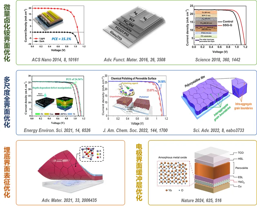 图1. 朱瑞教授等人在钙钛矿太阳能电池界面优化策略及表征方法方面的进展