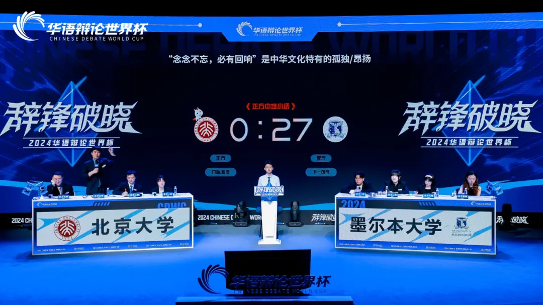 2024华语辩论世界杯由中国国际文化交流中心指导,华语辩论世界杯组委会和北京青年艺术发展促进会辩论专委会共同主办。活动主题是“辞锋破晓”,寓意希望借助辩辞的力量,看到青春的曙光。7月8日开幕后,6天时间内,来自北京大学、复旦大学、国防科技大学、香港浸会大学、澳门大学、加州大学戴维斯分校、牛津大学、墨尔本大学、新加坡国立大学、马来西亚理科大学(总院校)、早稻田大学等24支参赛队伍的171名选手呈现了40场高强度比赛。在这一国际化的思辨舞台上,北京大学代表队展现了对于时代与国家的深入洞察,奋力书写为中国式现代化挺膺担当的青春篇章。
