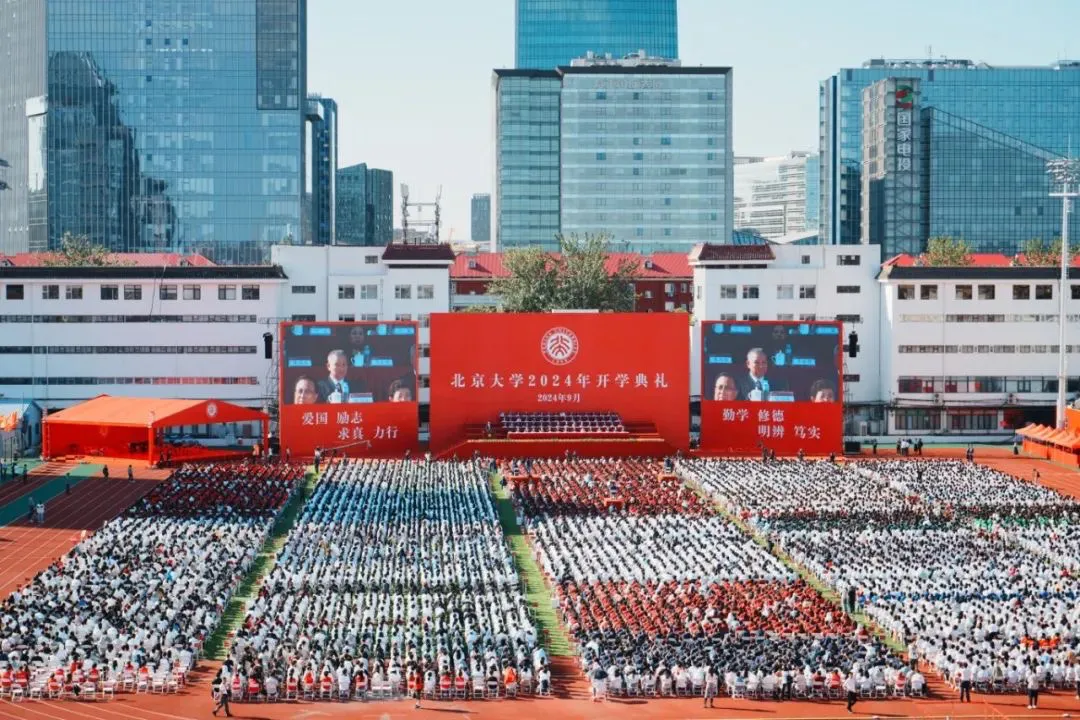 今天,我们隆重举行北京大学2024年开学典礼,热烈欢迎4408名本科新生、6936名硕士新生、3867名博士新生,以及来自109个国家的1741名留学生同学进入北大!首先,我代表学校,祝贺大家开启人生新的篇章!