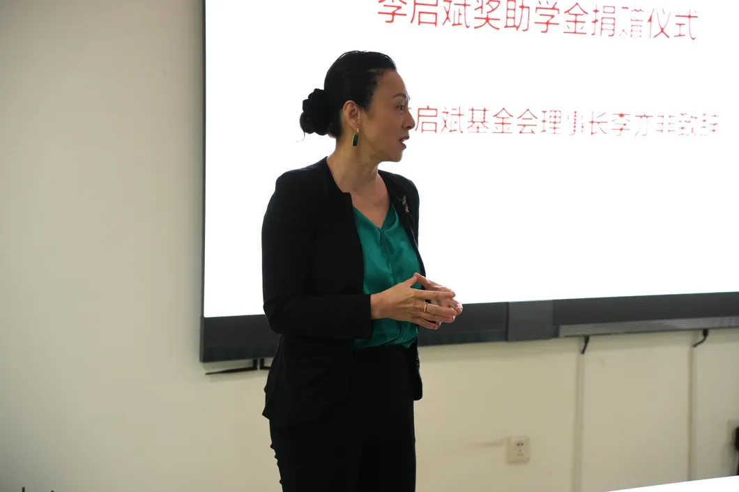 北京大学教育基金会副秘书长耿姝在致辞中表达了对李亦非的感激之情,并强调了奖助学金对激励学生投身天文事业的重要性。她提到,李亦非的个人传奇经历体现了她不断追求卓越的精神,也契合她设立李启斌奖助学金的初衷。她期待李亦非与北京大学加强合作,继续双方的美好缘分。