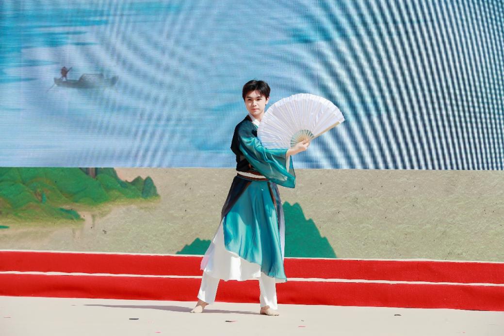 舞蹈《水韵》将水袖舞、剑舞和纸扇舞三种特色的舞蹈形式融合,传递中式审美的磅礴精神。