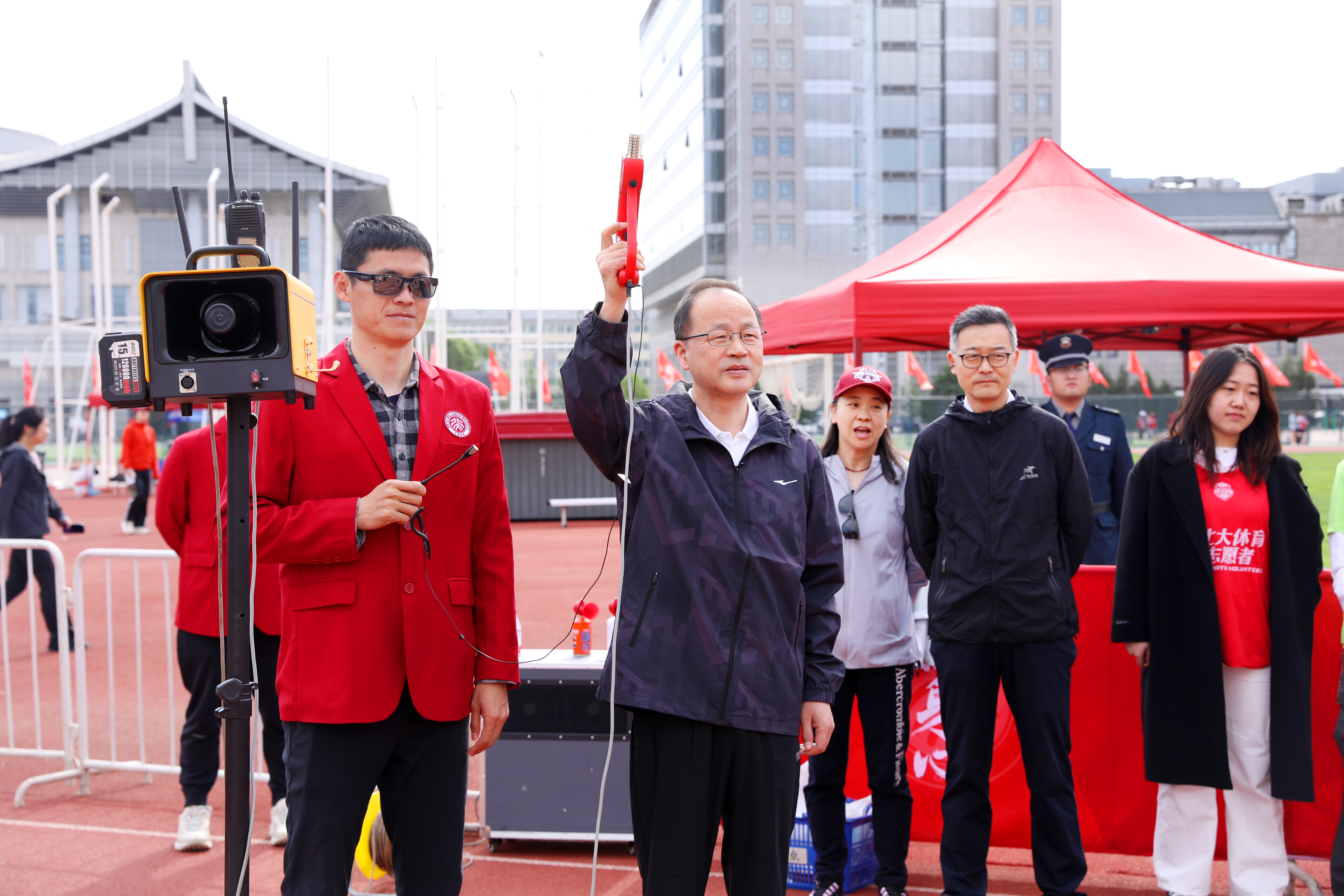 25日上午,教职工比赛率先开启。校党委书记何光彩来到现场观赛、看望慰问师生并察看各服务保障点。校党委副书记、纪委书记顾涛陪同。何光彩强调,春季运动会是学校认真落实立德树人根本任务、践行“五育并举”、传承发扬体育精神的重要载体,要进一步赓续北大百年体育传统,借赛事契机完善体育育人体系,着力培育具有北大特色的校园体育文化品牌。同时,赛事组织部门要协同配合,优化服务保障,确保师生全身心投入比赛。