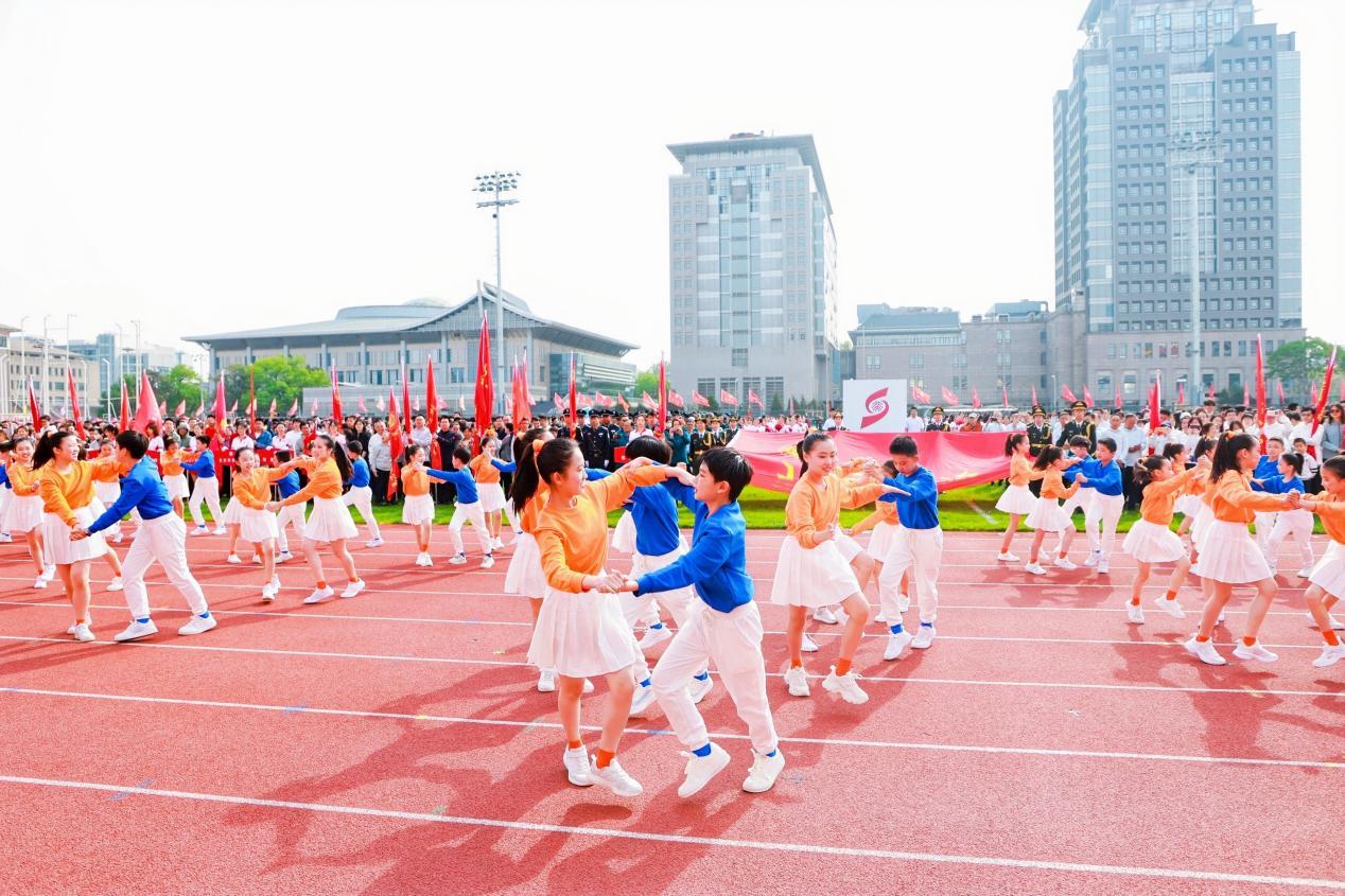 来自各院系(所中心)、各部门的1500余名教职工共同进行了精彩的八段锦团体操表演,他们动作整齐划一,时而如行云流水般舒展,时而似惊涛拍岸般有力,充分展现了北大人团结奋进、锐意进取的精神风貌。