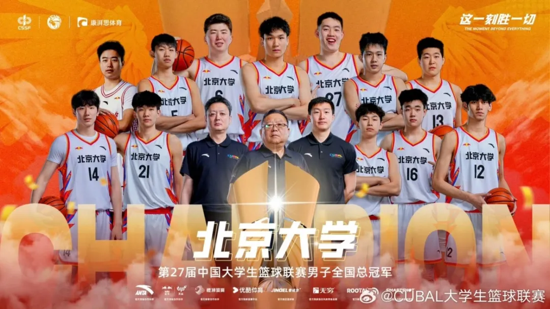 截至目前,北京大学男篮共五次荣获中国大学生篮球联赛(CUBA/CUBAL)全国总冠军(2014、2017、2018、2019、2025),展现出雄厚实力与稳定战绩。