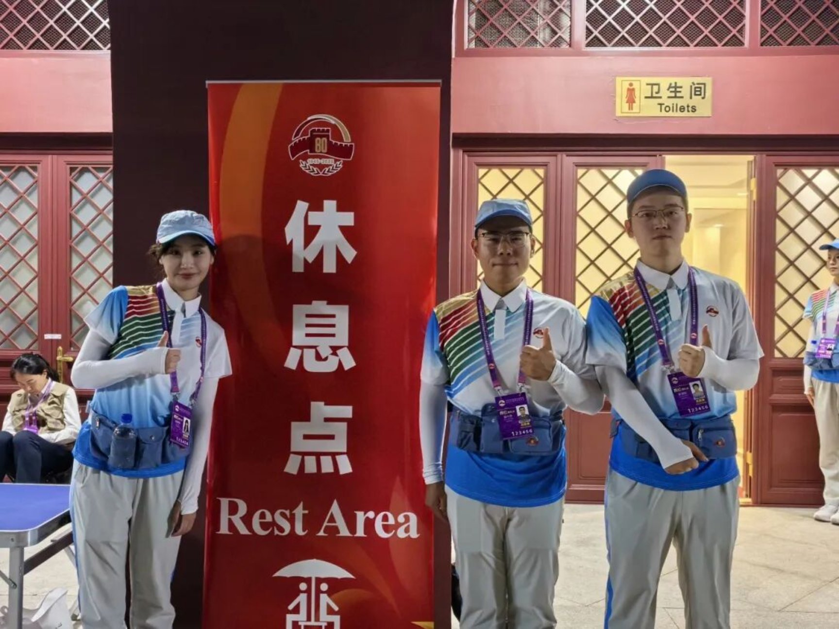 十分荣幸能够成为纪念中国人民抗日战争暨世界反法西斯战争胜利80周年大会的观礼台岗位志愿者。在一次次的演练中,我们不断精进自我,只为在现场达到最完美的服务状态,在世界面前展现出中国青年、北大青年最优秀的一面。作为志愿者,亲眼见到受阅部队走过天安门广场,让我对抗战精神有了更深层次的理解:铭记历史是为了珍惜革命先辈们用鲜血与生命换来的和平。今天我在长安街向祖国报到,希望我能够在今后的日子里牢记这段荣耀的经历,为中国式现代化与祖国医药卫生事业发展贡献自己的青春力量!