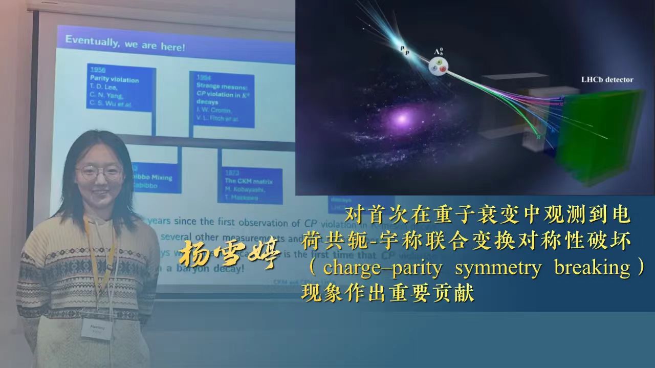 今年3月,在第59届国际电弱物理会议上,研究人员宣布首次在重子衰变中观测到电荷共轭-宇称联合变换对称性破坏现象,物理学院2022级博士生杨雪婷对这一成果作出了重要贡献,被合作者引到讲台上,接受大家的祝贺。她从本科起就参与这项研究课题,在大科学国际合作中锻炼成长,通过持之以恒的数据分析和交叉验证,最终获得了明确的实验证据。