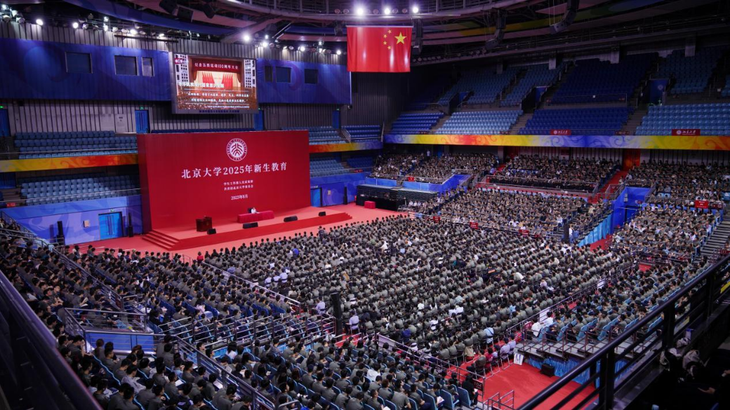8月28日上午,北京大学党委书记何光彩为2025级本科新生讲授“开学第一课”,4000余名新生在邱德拔体育馆现场聆听。校党委副书记、副校长宁琦主持活动。