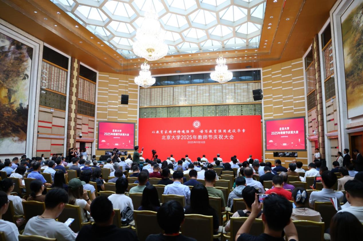 9月10日下午,北京大学2025年教师节庆祝大会在英杰交流中心阳光厅举行。校党委书记何光彩、校长龚旗煌等学校领导班子成员出席大会。学校2024—2025学年获得各类奖项的教师代表,各院系、职能部门和直属附属单位负责人,民主党派负责人,工会、教代会代表和学生代表参加大会。校党委常务副书记、组织部部长、医学部党委书记陈宝剑主持大会。
