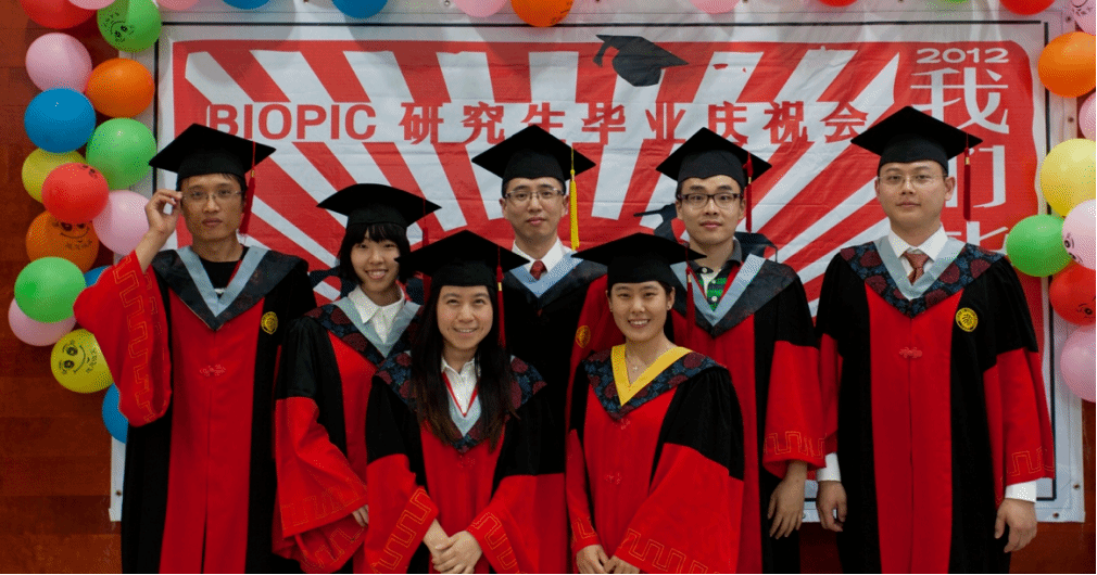 2012年BIOPIC早期的毕业生,也是黄岩谊组毕业的第一届博士生,从左到右:李文涛、周莹、申洁、黄岩谊、郑春红、费鹏、门涌帆
