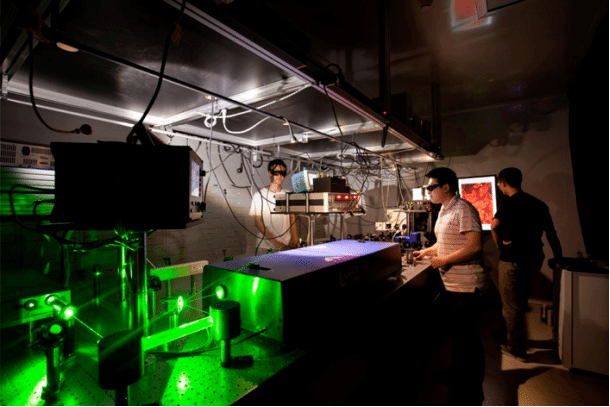 在导师黄春辉院士“做自己喜欢的事”的鼓励下,黄岩谊在学生阶段便开始与不同实验室合作,接触和学习其他领域的知识,先是“误打误撞”地在物理、化学的各个实验室“偷师”,此后又循着博士“跨界”经验,博士后期间在美国加州理工学院应用物理系、斯坦福大学生物工程系先后“闯”入了光学和生物工程领域。