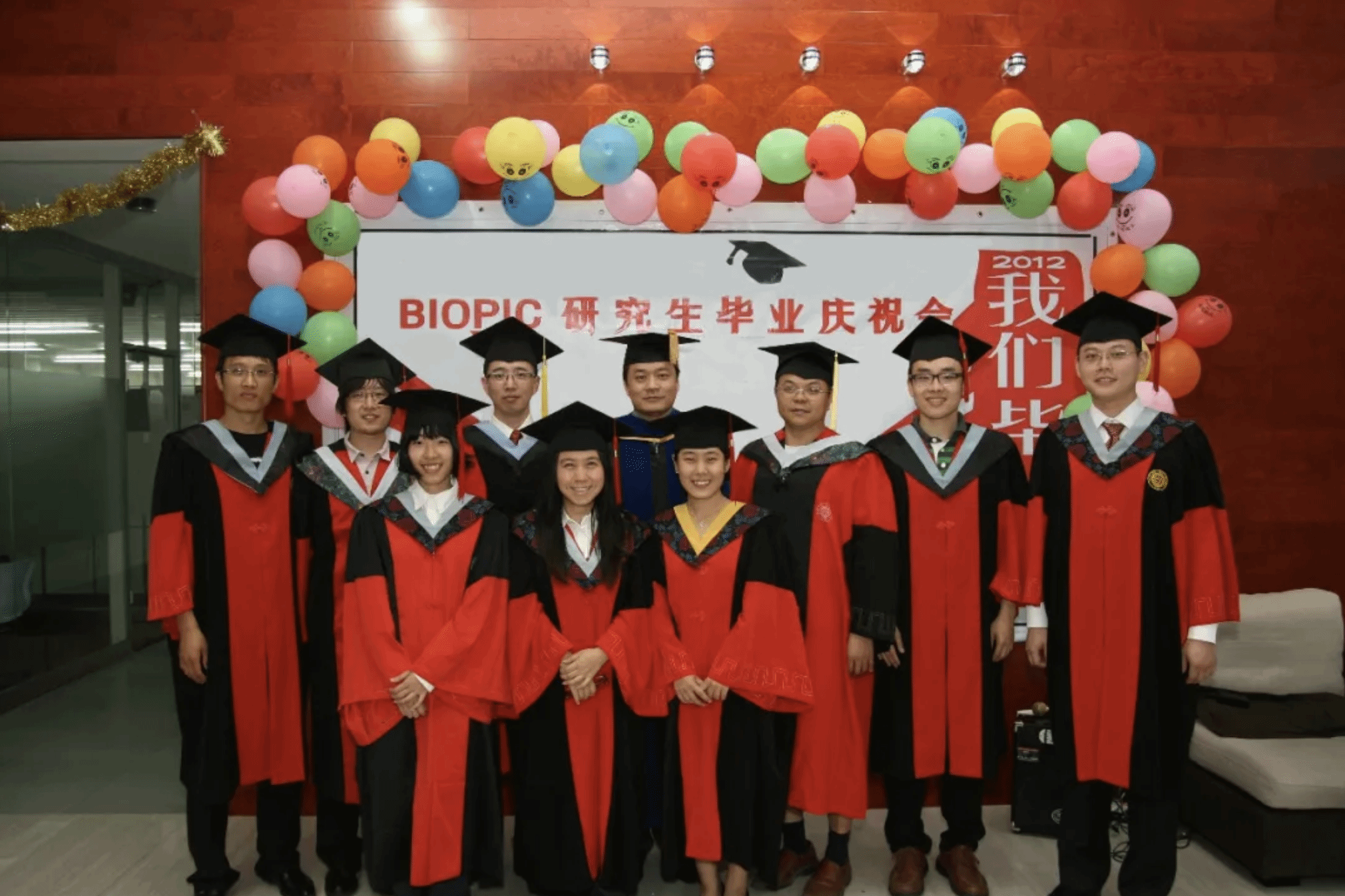 BIOPIC第一届博士毕业生合影(前排左到右:周莹,申洁,郑春红;后排左到右:李文涛,邢栋,黄岩谊,谢晓亮,苏晓东,费鹏,门涌帆)