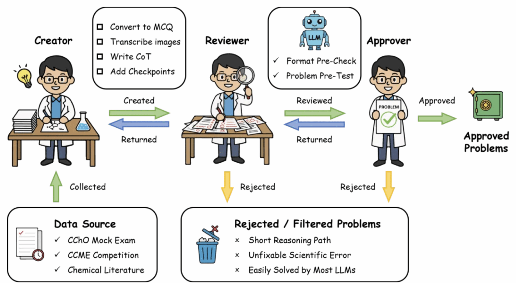 要设计一套让AI“没见过”、必须靠硬实力推理的题目,难度极高。然而,这正是北大化院的独特优势所在。近百名师生——其中不乏奥林匹克金牌得主——集结起来,决定给AI出一套高门槛、重推理、防作弊的试卷。