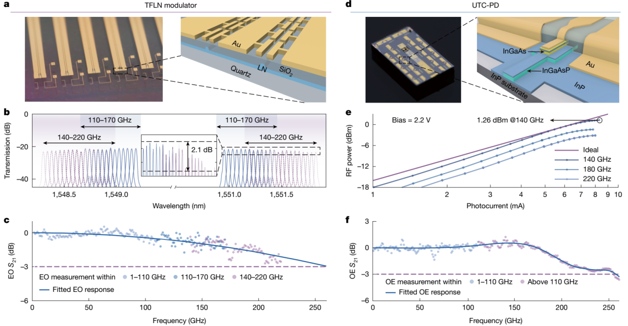未来,研究团队将继续着力提升系统集成度,彻底消除分立器件,探索基于薄膜铌酸锂平台的完全单片集成,最终实现从激光器到天线的全功能微型化收发模组。研究团队也正在把该成果扩展到太赫兹雷达、超宽带实时测频、太赫兹光谱学和成像等领域,为相关应用提供一种紧凑且经济的太赫兹生成、调制和检测方案。