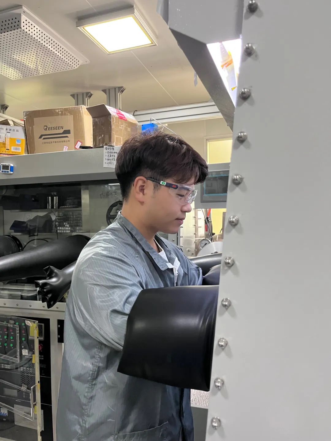还记得第一次走进实验室,面对移液枪、手套箱、旋涂仪等实验设备,我倍感陌生,却也从此对科研产生了浓厚的兴趣。我刚开始制备器件时,钙钛矿电池光电转换效率的世界纪录是25.2%,而我第一次在赵丽宸老师的指导下完成的器件效率是22%,这让我不由得沾沾自喜,觉得自己离世界纪录也并不遥远。然而,我很快就意识到,科研不是一帆风顺的旅程,也许是称量材料时0.5 mg的误差,抑或是器件退火时间差了两分钟,实验过程中的任何一点细微之处的偏差,都可能造成实验的失败。从电子科学与技术的本科专业转向原子与分子物理的研究生专业的经历,也让我对研究生阶段的学习多了一丝焦虑。