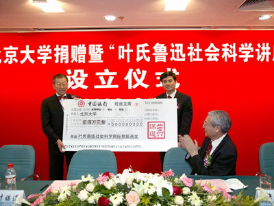 2006年,香港新昌国际集团有限公司主席叶谋遵先生向北京大学捐赠500万元人民币,设立北京大学首个校级讲席教席——“叶氏鲁迅社会科学讲席教授基金”。