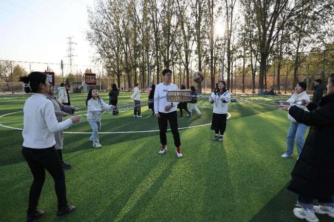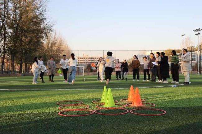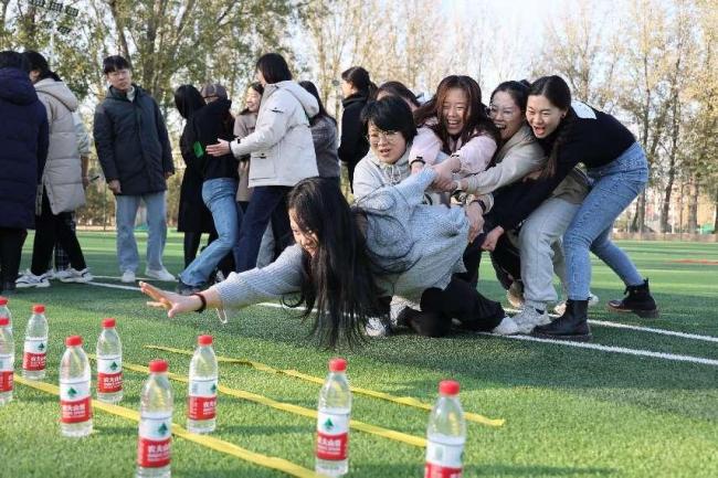 当天下午,附属幼儿园老师组织大家开展青年教职工趣味运动会。简单热身后,大家进行了“桃花朵朵开”“群龙取水”“杯子游戏”“同心鼓”“快速九宫格”等趣味十足的比赛,年轻教职工展现智慧、拼出实力、洋溢活力,操场上欢声笑语,冬日暖阳下,大家释放压力、回归童真。