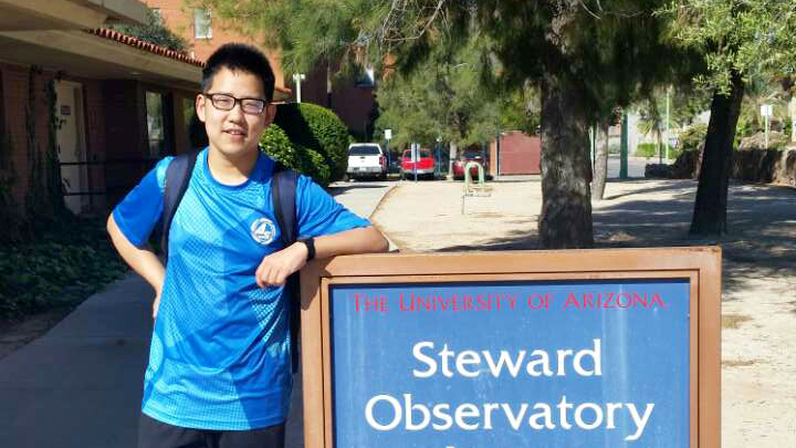 岳明昊,男,北京大学物理学院天文学系2012级本科生,荣获2013-2014学年度国家奖学金,北京大学SK奖学金,全国部分地区大学生物理竞赛(物理类)一等奖,北京大学三好学生等荣誉称号。曾担任青年天文学会会长,2015年3月赴美国亚利桑那州州立大学交换,进行天文学研究工作。平时积极参与学生工作、公益活动,服务同学、回馈社会。他对这片天空的执着,与为之付出的努力,让他沿着星迹一路前行。