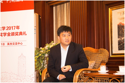 人才培养需要全社会共同努力,北大并不是独行在培养引领未来人才的道路上。怀着强烈的社会责任心,苏州工业园区于2007年开始在北京大学设立奖学金,鼎力支持北大的人才培养事业。园区的党工委委员、组织部部长林小明先生在采访中表示:“园区在北大设立奖学金,一方面是鼓励学生努力学习、全面发展,也希望能在奖学金的资助过程中,发现优秀人才,进而吸引更多优秀的北大毕业生到苏州工业园区创业和就业;另一方面是为了加强北京大学与苏州工业园区在人才培养和科技研发等方面的合作,扩大苏州工业园区在北京大学的影响力。”对于人才培养的“社会化”,林小明认为:“‘社会化’是一个趋势,要培养有才能、有远见、有开拓精神和创新能力的社会化人才,需要全社会方方面面关注人才,支持人才成长。”