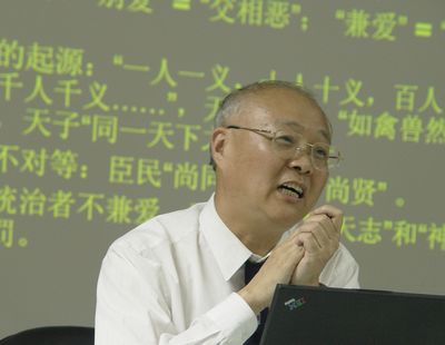 静园旁哲学系古色古香的院子里,有这么一位老先生: 他喜欢思考,从苏格拉底、亚里士多德到维特根斯坦、卡尔•波普,他一心一意斟酌着如何把先哲的思想用中文表达、传递给学生; 他热爱教学,把它作为毕生的事业,“天地君亲师”,教师在他眼中是神圣的,“得天下英才而教之”,既是一种荣誉,更是一种责任、义务; 他关心学生,把溢于言表的爱通过备课、授课、谈话、讲座和自己的的一言一行传染给每一个他曾教授过的学生;他就是虽已满头白发仍然奉献在讲坛、执着于教师生涯的哲学系主任赵敦华教授。
