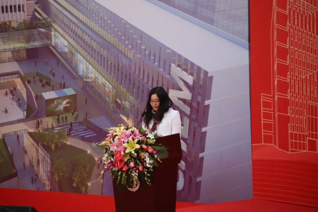2015级博士生代表董逸帆同学代表全体在校生发言,她在发言中表达了作为一名北大化院学子的自豪之情,对新楼落成的热情期盼之情,最后献上了莘莘学子对学院未来最由衷的祝福。