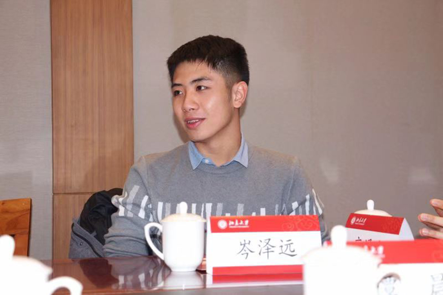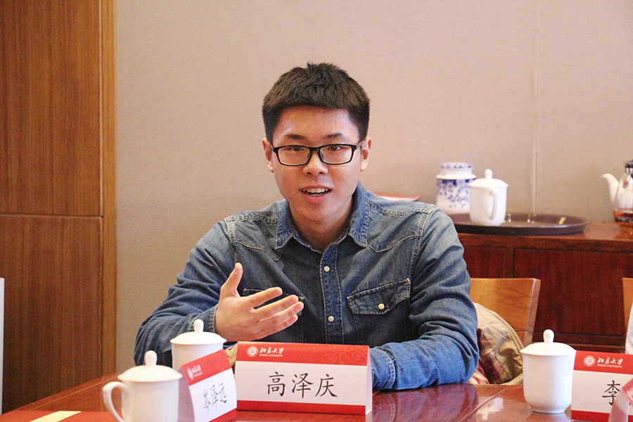 黄奕聪助学金获奖学生高泽庆是社会学系2015级本科生,他感谢基金会给与的交流机会,表示这份助学金是跨越了年龄、时间和空间把捐赠方和北大学子连接起来的桥梁,感恩捐赠人的支持,感恩北大,希望把北大精神埋在心里,传承下去,发扬出去。