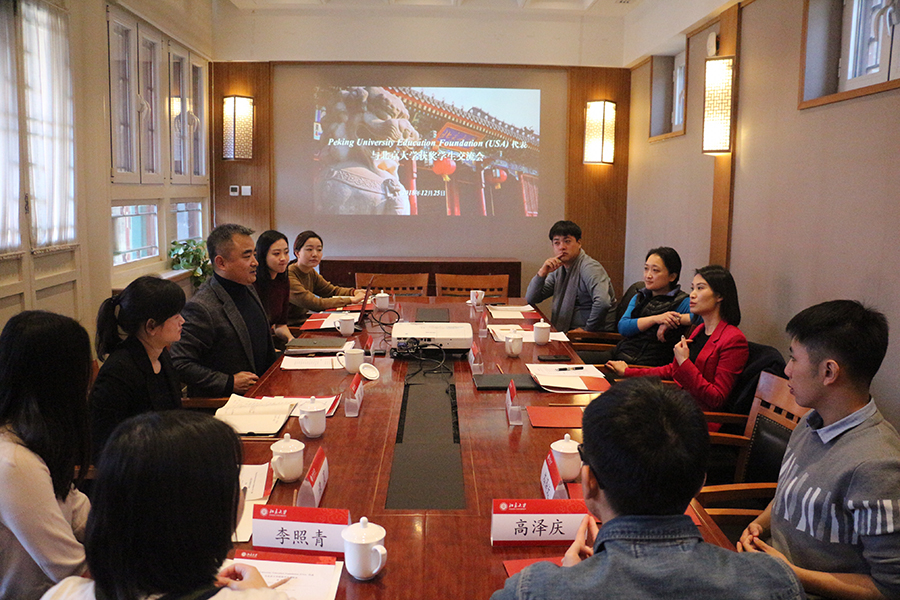 12月25日上午,2018年北京大学教育基金会(美国)[Peking University Education Foundation (USA), PKUEF (USA)]代表与PKUEF (USA)资助的北京大学项目获奖学生交流会在北京大学教育基金会成功举行。北京大学教育基金会秘书长李宇宁,PKUEF (USA)总裁赵琳、财务总监唐良瑜出席会议,与获奖学生代表进行了亲切交流。交流会由北京大学教育基金会拓展部项目主管廖肖文主持。