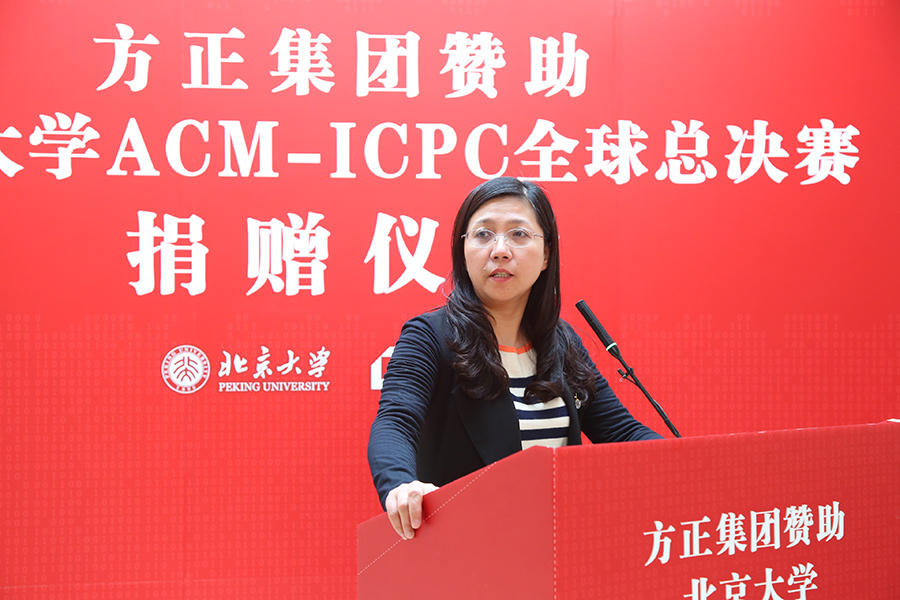 黄如院长认为,在北大举办ACM-ICPC全球总决赛对于北大信息学科和计算机学科的发展具有特殊意义。她觉得由中国企业担任该项赛事的全球钻石赞助商反映了中国信息产业突飞猛进的发展。黄如院长表示,北大校办企业支持北大举办此次竞赛是双方珠联璧合,具有里程碑式的意义。