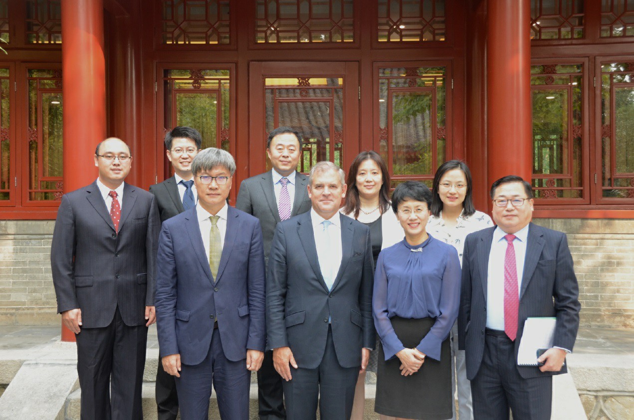 9月11日,英国劳合社(Lloyd’s)主席Bruce Carnegie-Brown先生率代表团访问北京大学,北京大学授予英国劳合社“教育贡献奖”。北京大学副校长、教育基金会副理事长王博、经济学院前任院长孙祁祥、副院长秦雪征、教育基金会副秘书长胡俊、国际合作部交流项目办公室主任李韵等在临湖轩会见了客人并举行了授奖仪式。