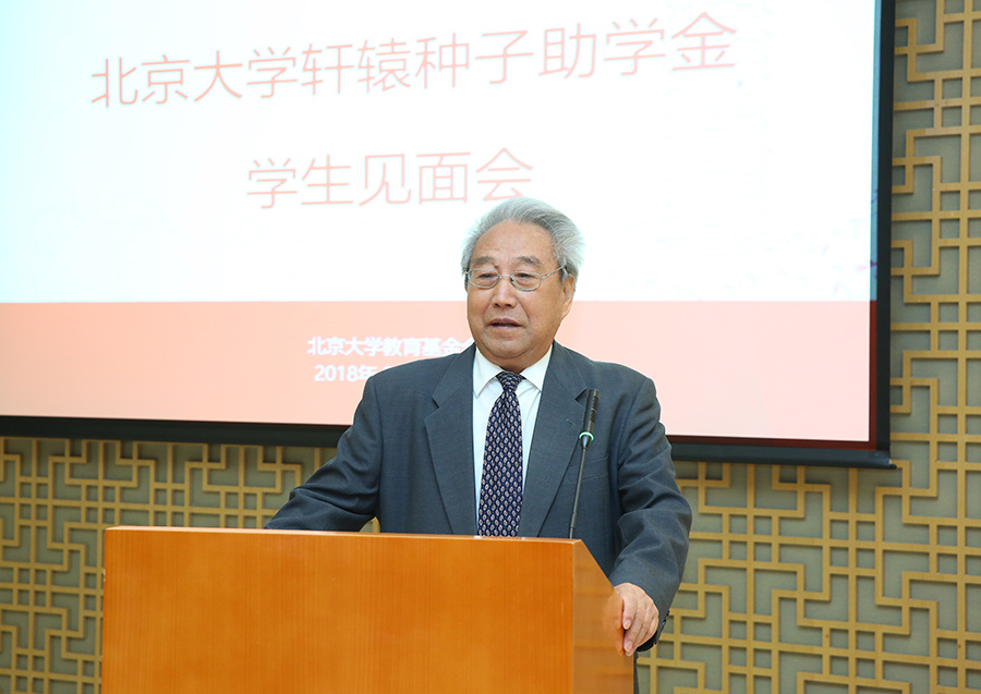 徐雅民教授满怀深情地回忆了自己在北大求学时的经历,作为受到政府和社会资助的贫困生,他深切感受到爱心传递的重要性。徐教授向同学们提出“严于修德”和“勤于治学”两点要求,希望他们能成长为有责任、有担当、有益于国家和民族的北大人。