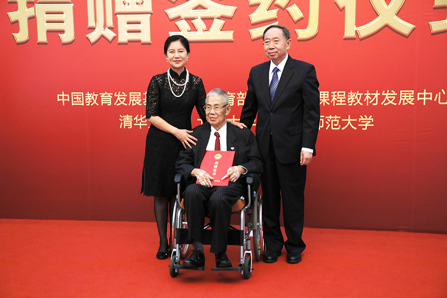 中国教育发展基金会理事长袁贵仁为冯燊均先生颁发捐赠证书