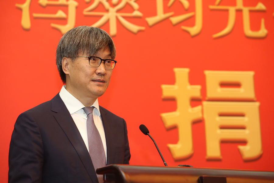 北京大学副校长王博介绍了冯燊均先生夫妇与北京大学的深厚渊源和友谊,并向冯先生此次善举表示诚挚感谢。王博认为,文明和传统对当代中国发展进程来说是非常重要的资源,冯先生夫妇的捐资将让北大师生受益,更重要的是其背后传递了一种国家和民族精神,既是在回望历史,又是在面向未来。