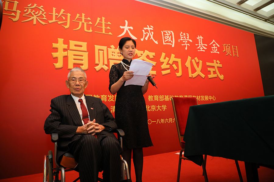 6月6日,冯燊均先生大成国学基金项目捐赠仪式在人民大会堂举行。香港广义和船厂有限公司董事长、冯燊均国学基金创始人冯燊均先生和夫人鲍俊萍女士向中国教育发展基金会捐资1.5亿元,设立“大成国学基金”,支持教育部基础教育课程教材发展中心和北京大学、清华大学、北京师范大学开展中华优秀传统文化相关课程、教学、研究与活动。其中,北京大学大成国学基金将用于设立大成国学奖学金、奖教金,并设立“大雅堂”发展基金,支持国际汉学家研修基地的发展建设。