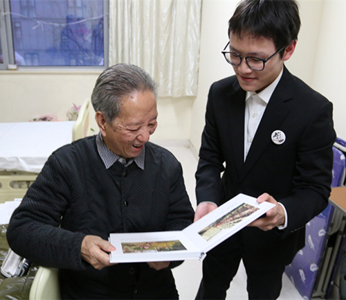 哲学系顾逸凡代表20位获奖同学向杨辛先生赠送自制纪念相簿