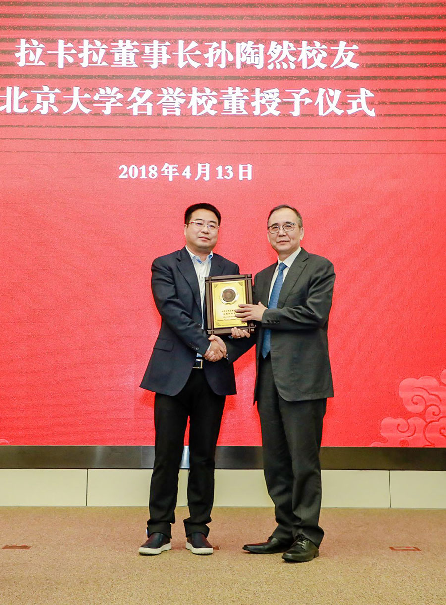 4月13日,孙陶然校友北京大学名誉校董授予仪式在北京大学光华管理学院阿里巴巴报告厅举行。多年来,孙陶然校友为母校的教育事业贡献了宝贵力量。他对母校的支持与厚爱激励着更多北大校友回馈母校、投身公益。北京大学决定聘请孙陶然校友为北京大学名誉校董,为母校的发展建设献计献策,共同携手为社会贡献力量。