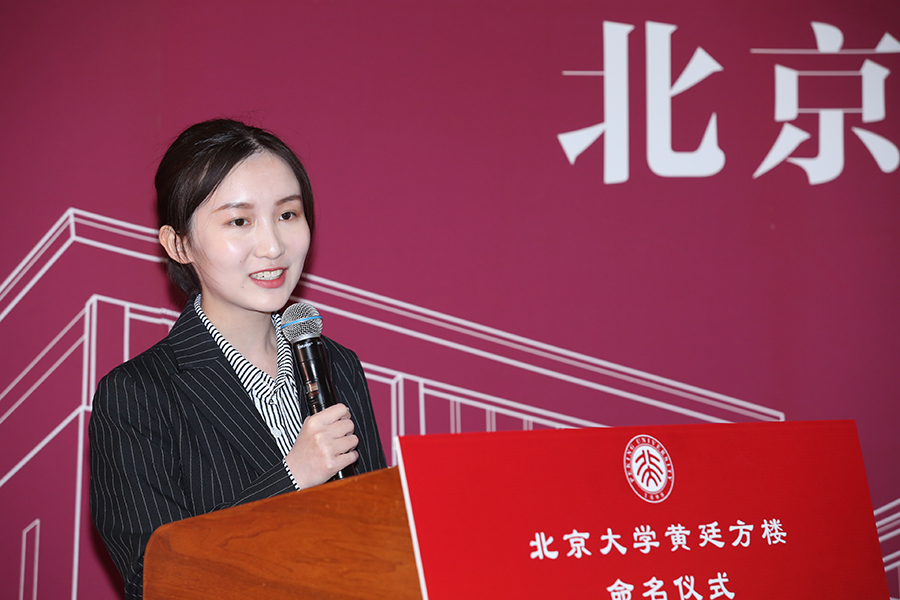 黄廷方/信和优秀学生海外交流奖学金获奖学生代表邓倩如表示,黄廷方/信和奖学金不仅给了自己难得的英国体验,更激励自己抓住一切机会聆听、发问和学习。她非常感激黄廷方慈善基金的慷慨资助,让更多学子能够选择海外学习,形成国际化视野。她表示,“黄廷方楼”承载了北大人的很多故事和记忆,未来广大学子定将不断努力,不负厚望。