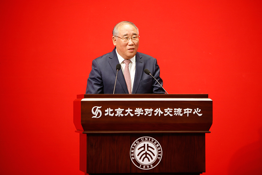 随后,现场嘉宾围绕“可持续发展:中国的角色、机遇和挑战”的主题开展座谈,汤超教授主持座谈会。解振华先生和莫言博士先后致辞。