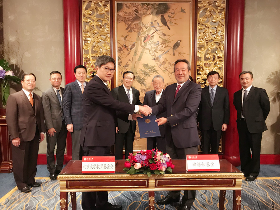 12月21日,香港嘉里集团主席、北京大学名誉校董郭鹤年宣布通过郑格如基金会向北京大学捐资1.1亿元,支持北京大学餐饮中心的建设。这是继2012年捐资3000万支持该大楼之后的又一重要捐赠。嘉里集团董事长郭孔丞和北京大学副校长、教育基金会副理事长王博代表双方在捐赠协议上签字。嘉里集团郭惠光董事、黄小抗总裁、郭氏基金主席彭定中、北京大学党委书记、教育基金会理事长郝平、党委副书记刘玉村等出席并见证了捐赠协议的签署。
