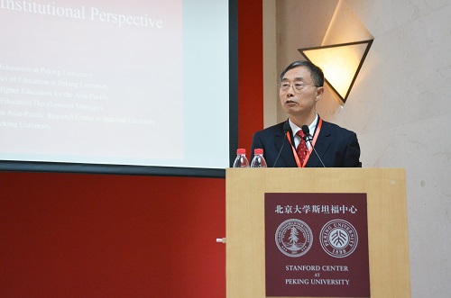 闵维方在致辞中指出,在科学技术迅速发展以及网络社会和知识经济崛起的背景下,建设世界一流大学已经成为一种世界现象,并且成为提升国家硬实力和软实力的战略举措;通过聚集优秀学者、寻求真理、推进前沿研究,大学不仅成为推动经济发展的引擎,同时也是提供文化产品、价值观和信念的基础。但是,在建设世界一流大学的过程中,相对浅层次的技术方法和资源配置受到了广泛的重视,而更深层次的制度问题却被忽略。第二届北大-斯坦福论坛力图将对高等教育发展的思考从表层的技术关注转向更深层次的制度探讨,从而深化对世界一流大学建设的理论认识,促进实践探索。