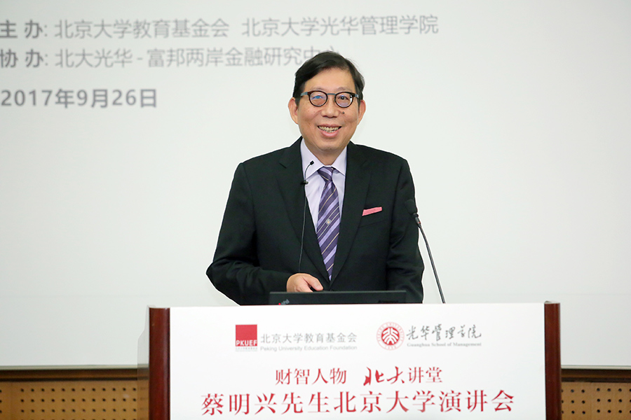 9月26日,台湾富邦金控董事长蔡明兴先生一行访问北京大学,并在光华管理学院举行了“财智人物北大讲堂”演讲会。蔡明兴先生用生动的演讲与北大师生分享了富邦金控创业、发展壮大和回馈社会的精彩历程。