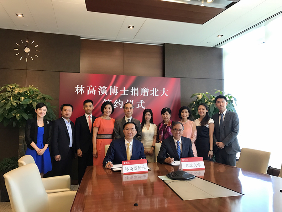 6月25日,香港恒基集团副主席、智华基金会创办人林高演先生签署捐赠协议,向北京大学捐资支持电教大楼的改造工程。林高演先生及家人,北京大学名誉校董、北大之友(香港)创会会董陈国钜先生、会董陈上智先生、会董伍嘉伟先生,和北京大学校长林建华、教育基金会秘书长邓娅、副秘书长耿姝、校长办公室副主任李航等出席捐赠仪式。