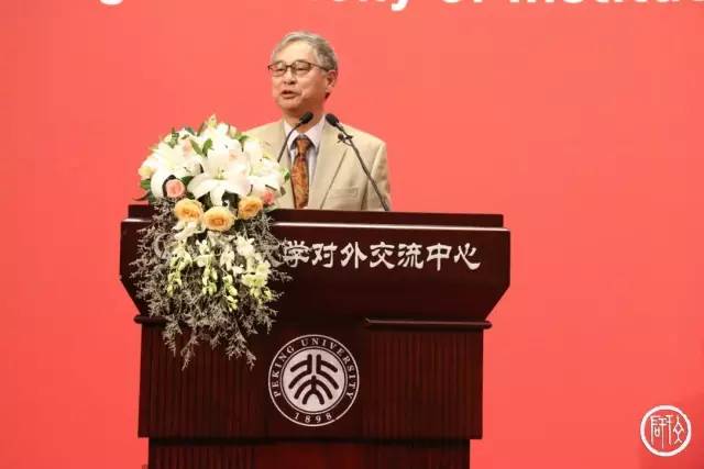 复旦大学资深特聘教授葛兆光、北京大学教授陈平原、美国芝加哥大学教授安德鲁·阿伯特代表中外学者致辞。葛兆光教授提出了对北大文研院创立新模式的期许,也以“华山论剑”为例,鼓励北大文研院砥砺学术,激活思想。陈平原教授认为,北大文研院没有豪言壮语,而是通过务实的作风深得人心,不是要求多出成果快出成果,而是搭建发展平台。他希望北大文研院做到学科之间有碰撞,视野之间有交流,学问之上有情怀。安德鲁·阿伯特教授认为,北大文研院的建立为解决大学面对的两大困境提供了可能性。大学的困境之一在于专业的过度细化,而困境之二在于大学作为机构本身也处在发展的选择期之中。大学是涵育文化的机构,北京大学文研院的选择正是对大学发展问题的一个回应。