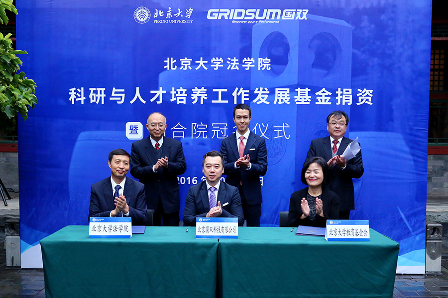 10月21日,“北京大学法学院科研与人才培养工作发展基金”捐资暨法学院四合院冠名仪式在北京大学蒋家胡同四合院举行。北京国双科技有限公司此次慷慨捐资,支持北京大学法学院科研和人才培养事业,助力大数据法律研究和国家智库的深入发展,以促进法治学术研究繁荣进步、推动法治实践全面深化。